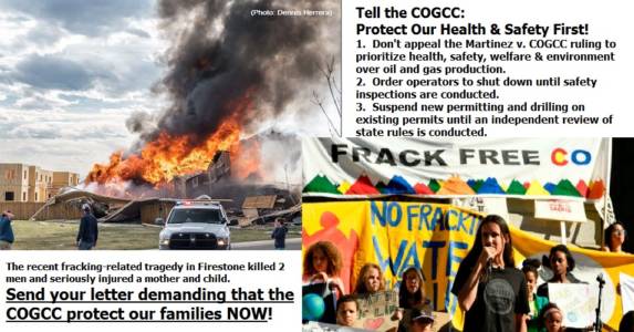 May 11, 2017 Tell the COGCC to protect Colorado families from future tragedies like Firestone! In the wake of the tragedy at the Martinez home in Firestone that killed two men and seriously injured a woman and child, and with...